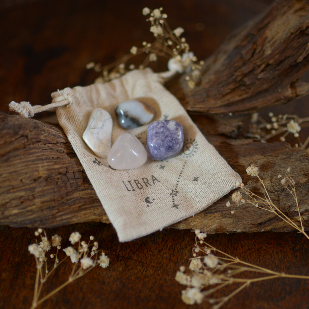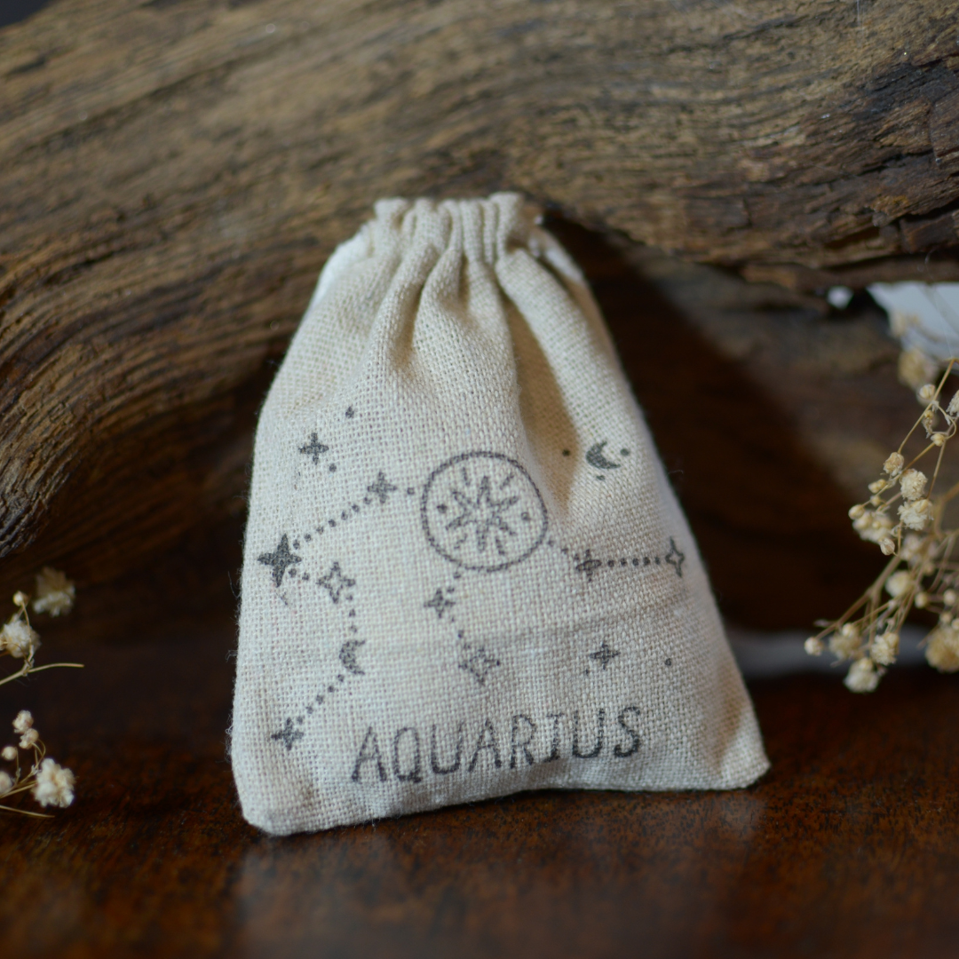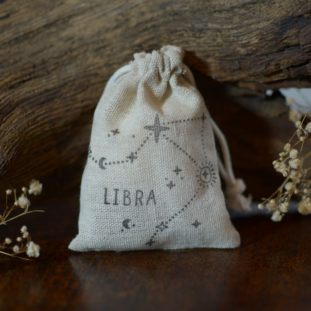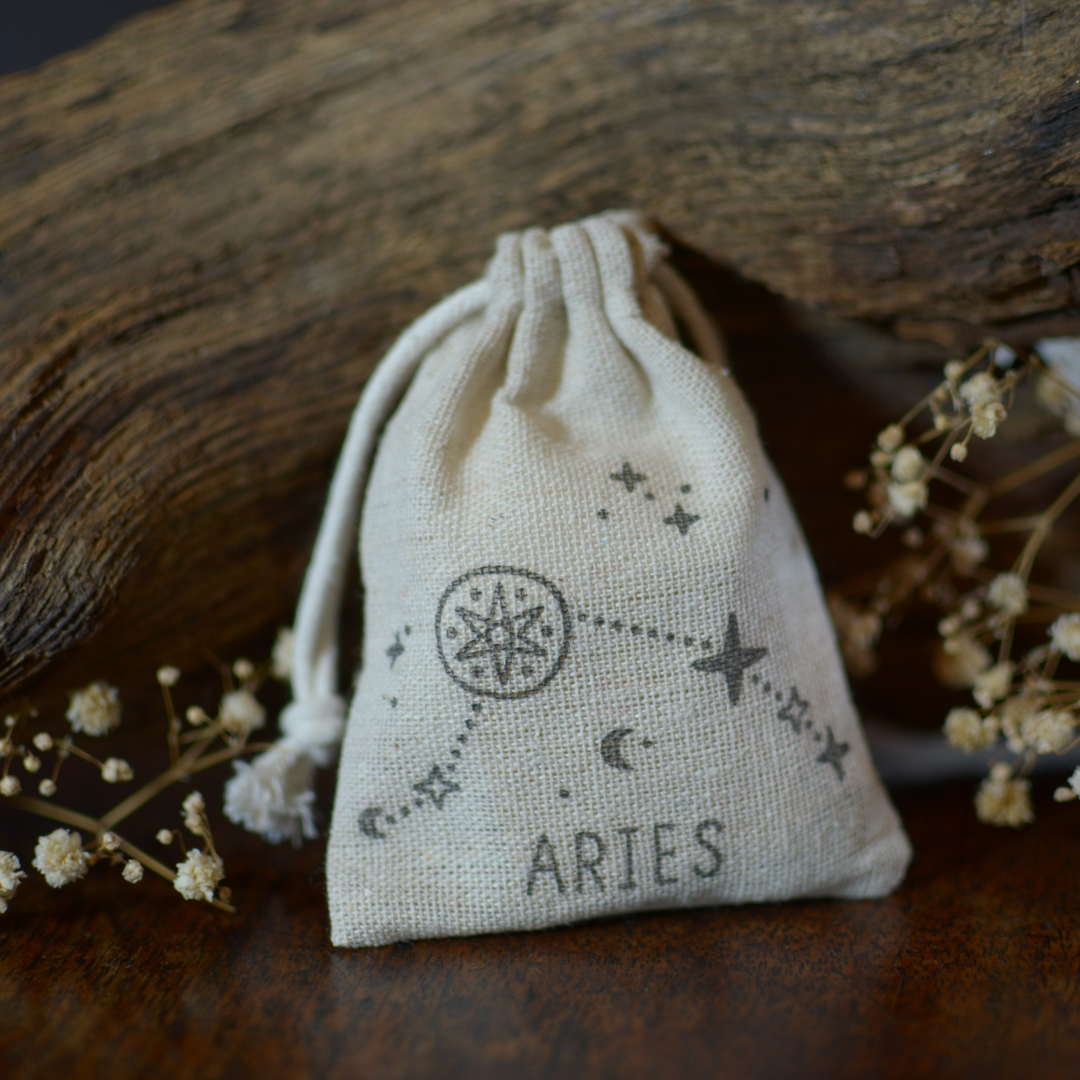 I’ve designed each Astrology crystal pouch to align with and support the unique energies of the twelve zodiac signs. Each set comes in a hand-stamped cotton pouch featuring its corresponding constellation and a note of all the crystal names and properties. Keep them with you for daily guidance and energetic support